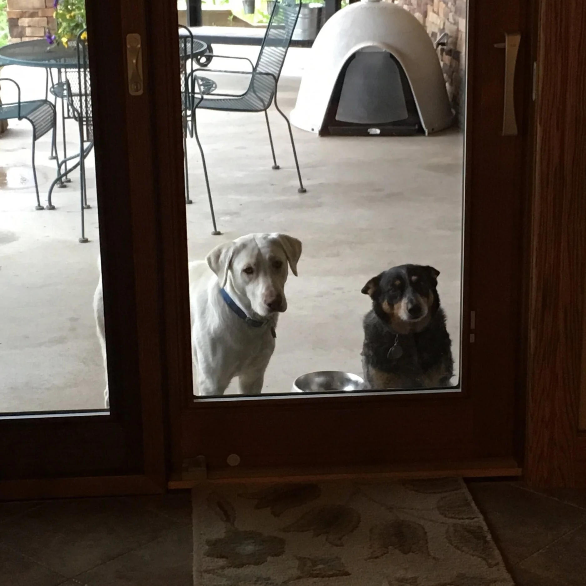 Staying at my cousin’s house. We REALLY wanted to be let in the house!